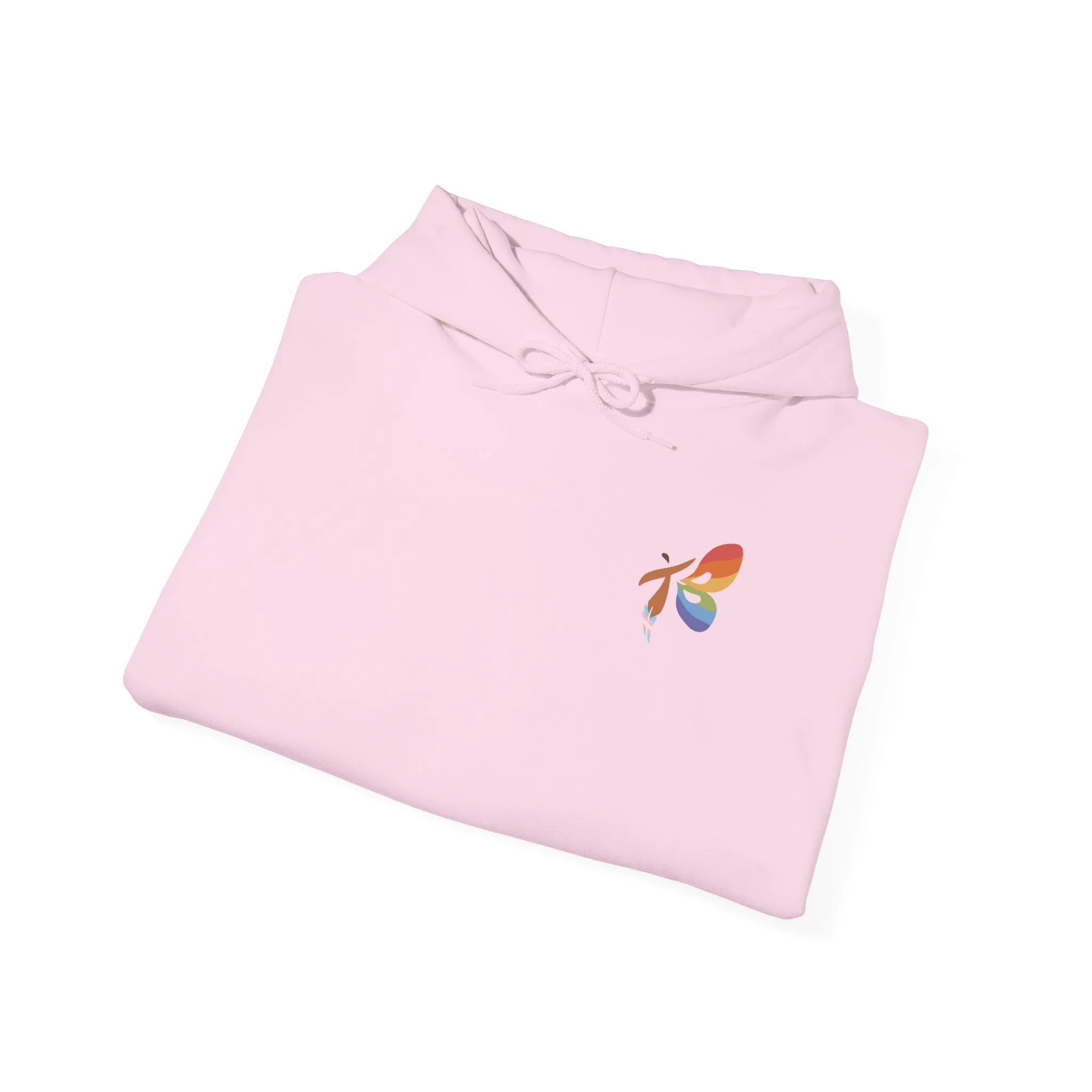 This soft, midweight hoodie carries a quiet, confident message — rendered in warm rainbow hues across the back and finished with a small, colorful emblem on the chest. The roomy hood and kangaroo pocket add familiar comfort for cool mornings, while the tubular knit and color-matched drawcord keep the silhouette clean and durable. Wear it when you want clothing that speaks gently but clearly: a cozy layer for marches, meetups, late-night talks, or simply walking the city streets with friends. The subtle chest mark keeps the statement personal; the bold, arced text on the back opens the conversation.