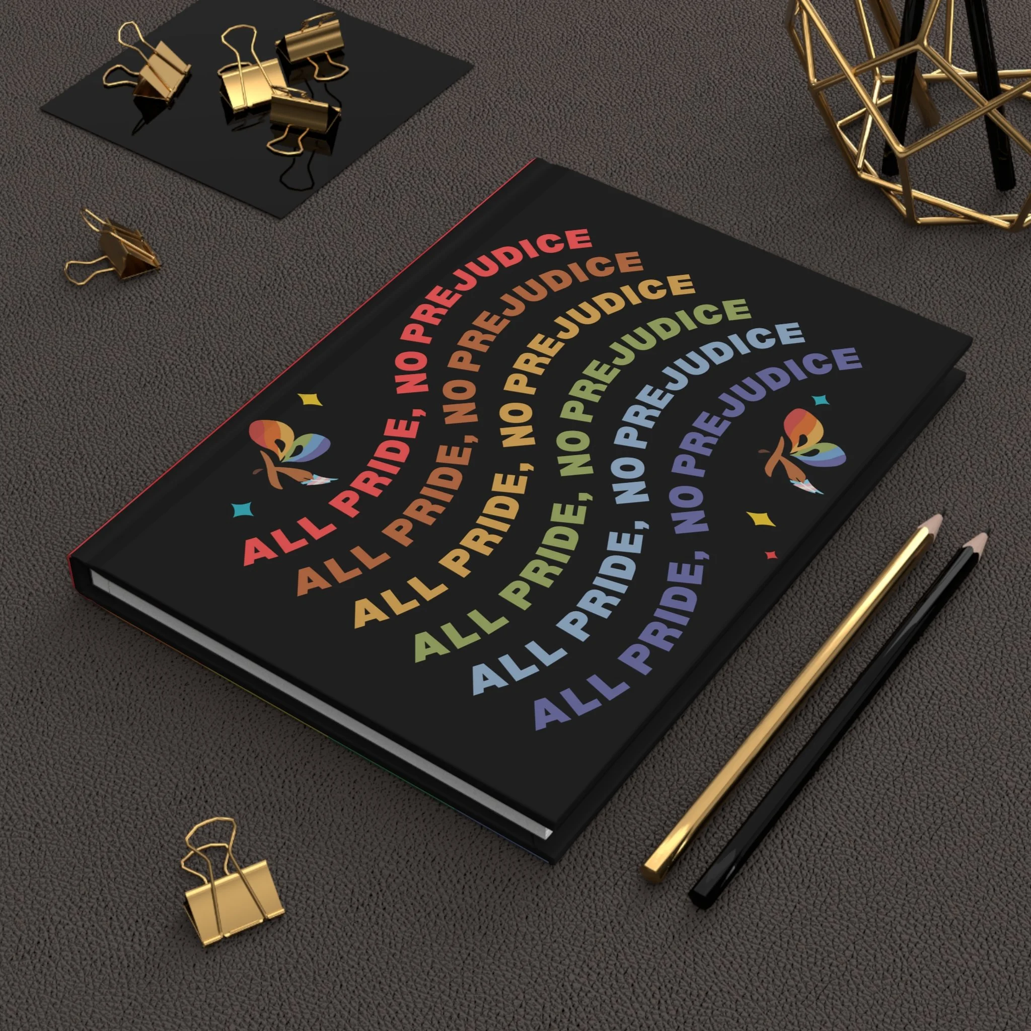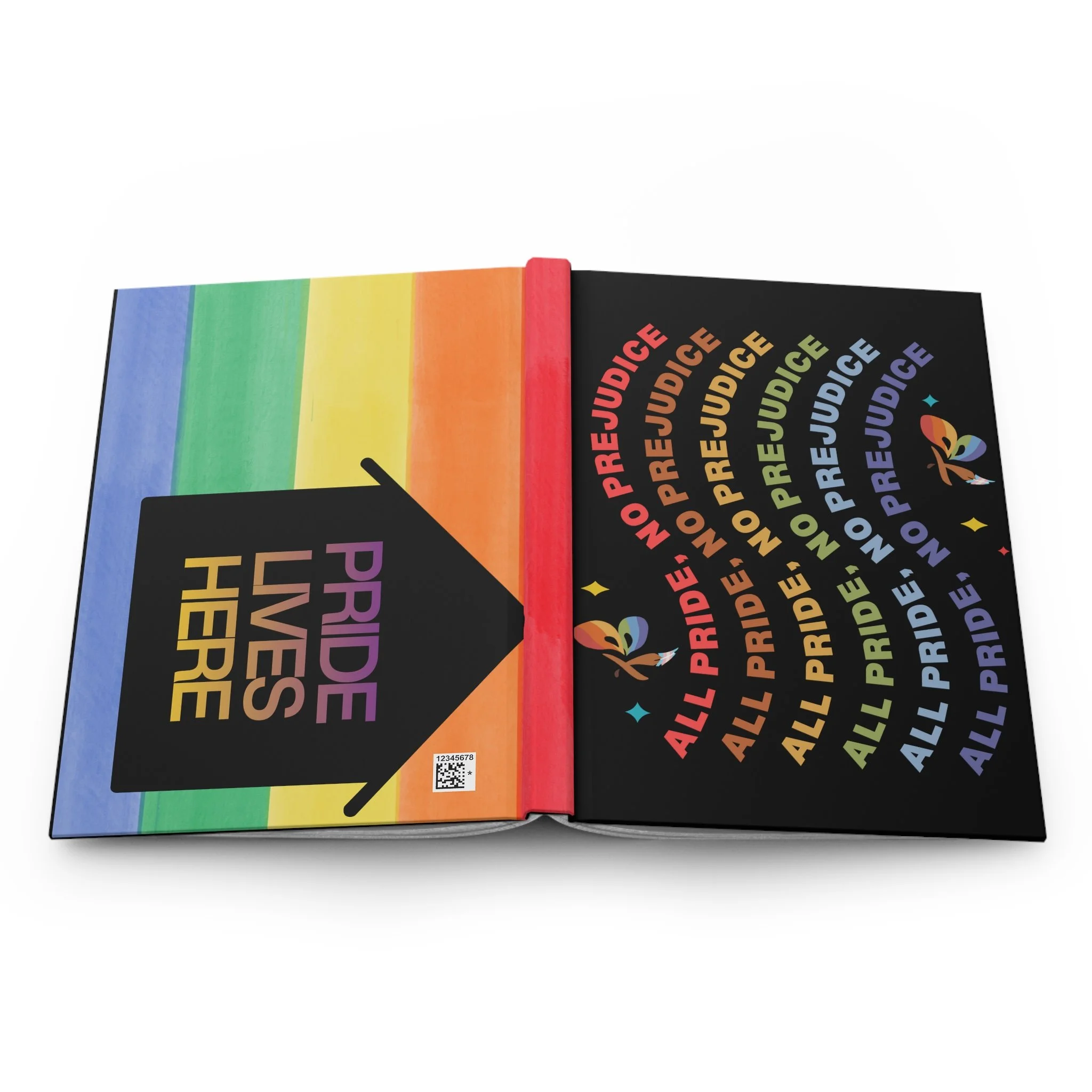 A hardcover journal that carries bright, unapologetic pride. The matte laminated cover feels smooth under your fingers while bold rainbow graphics wrap fully around the book, making a confident statement every time you reach for it. Inside, 150 lined pages with perforations give you space to plan, process, and create—then tear out pages cleanly when you want to share or display. The sewn casewrap binding keeps the spine flexible so the journal opens flat for easy writing. Small production barcode on the back is discreet and doesn’t distract from the design. This journal belongs on the coffee table, in the tote, or next to your bedside lamp—wherever you keep the moments that matter.